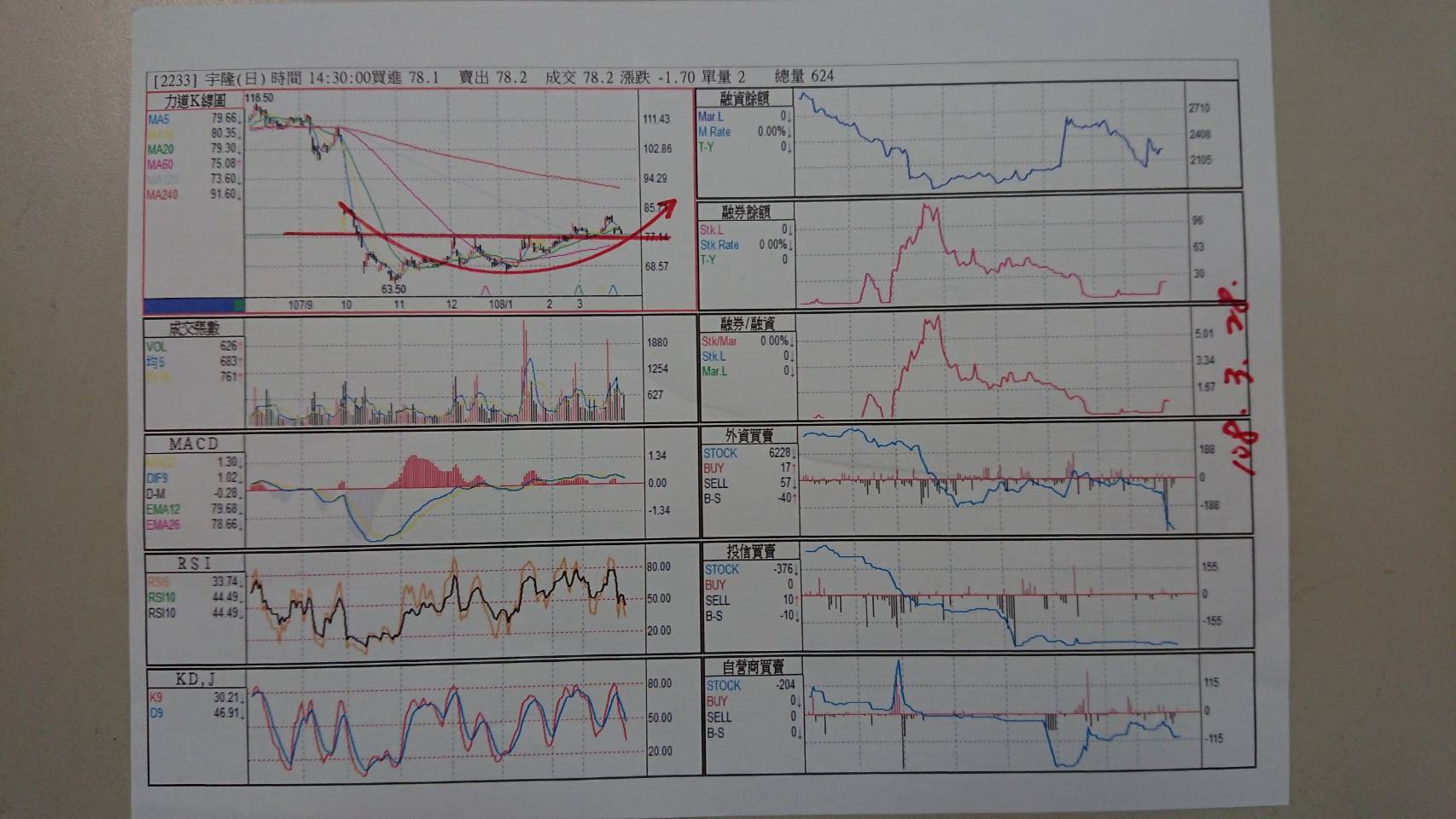 所謂整理出飆股 有量是大哥 在量縮的修正過程中 找尋趨勢拋物線向上 第一季獲利成長 第二季又進入產業旺季的個股買進佈局 。本週六3/30早上10:00-下午15:00 有購買拙著““神奇的股票拋物線一書””讀者